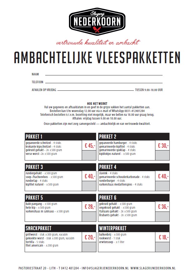 Gaat u barbecueën of gourmetten? Of staat er een feestdag voor de deur? Slagerij Ebergen biedt bestellijsten zodat uw organisatie zo goed mogelijk verloopt.